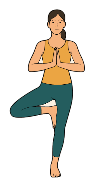 Apoie o pé oposto na parte interna da coxa ou panturrilha (nunca no joelho).
