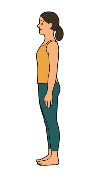 Ative as pernas, alongue a coluna e relaxe os ombros.